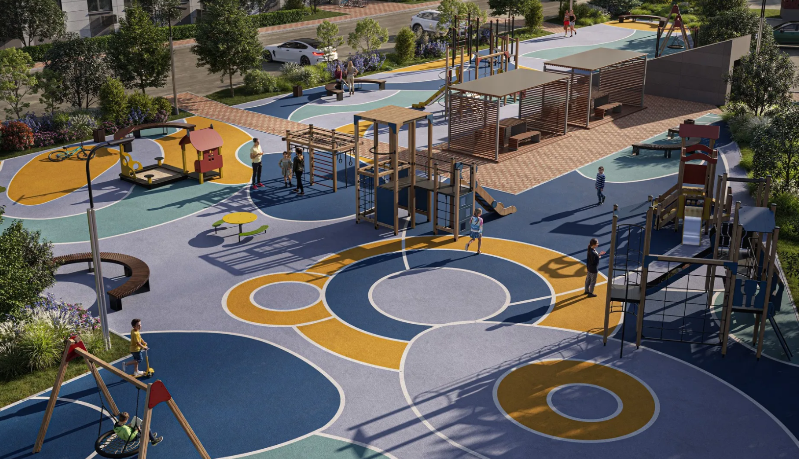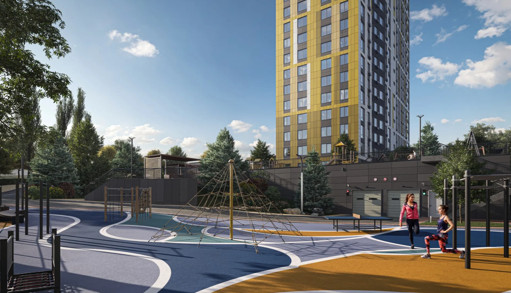 На территории жилого комплекса появятся игровые зоны и спортивные площадки, уютные зоны отдыха со скамейками и универсальная воркаут площадка. Жильцы любого возраста смогут отлично провести здесь время как зимой, так и летом.